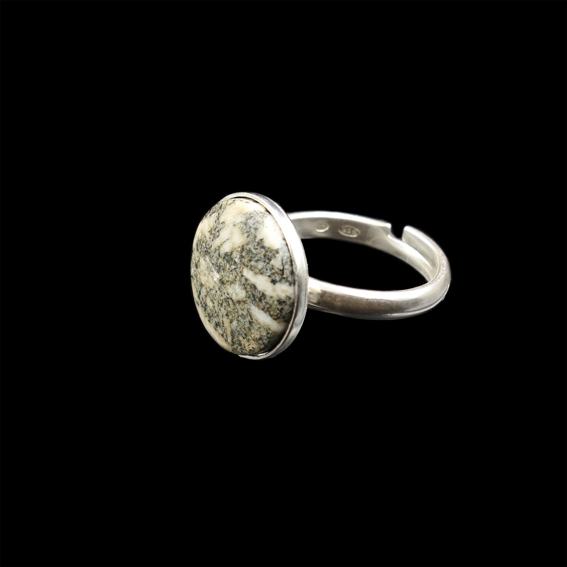 Größenverstellbarer Silberring mit handgefertigtem Andesitporphyr.