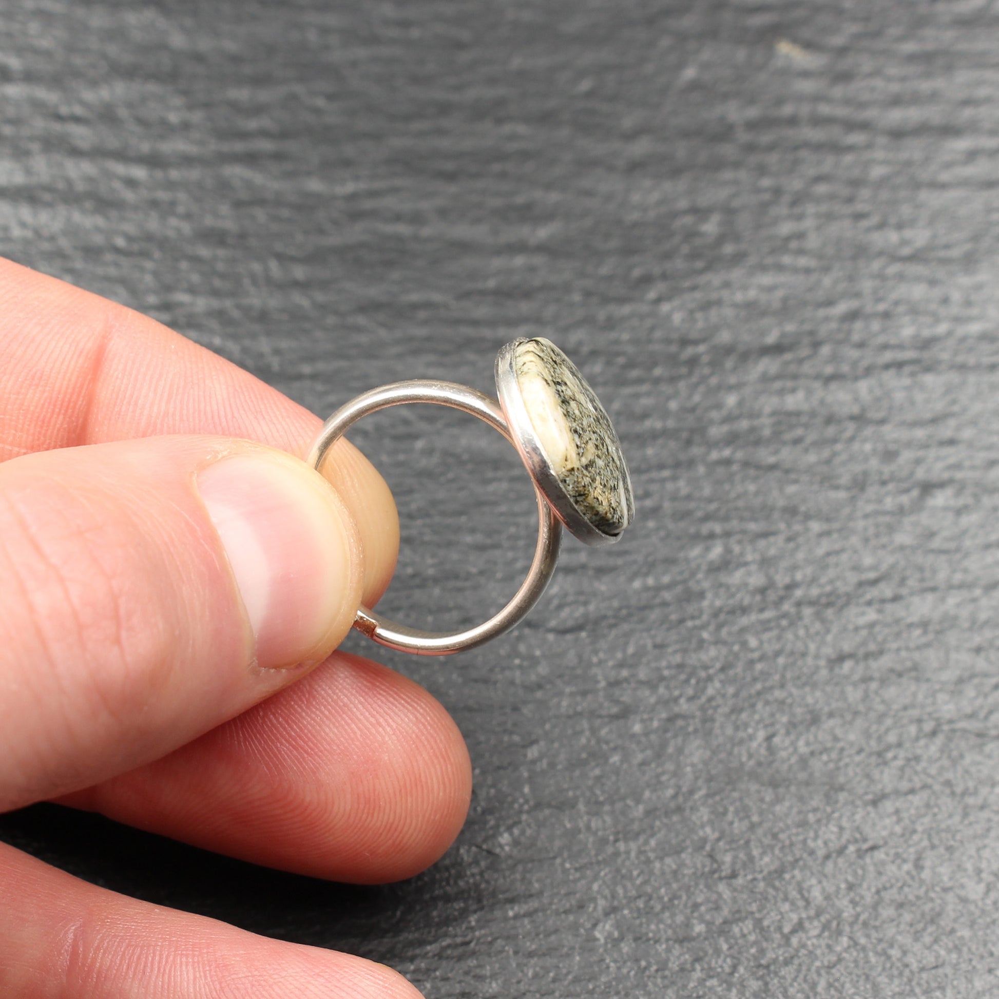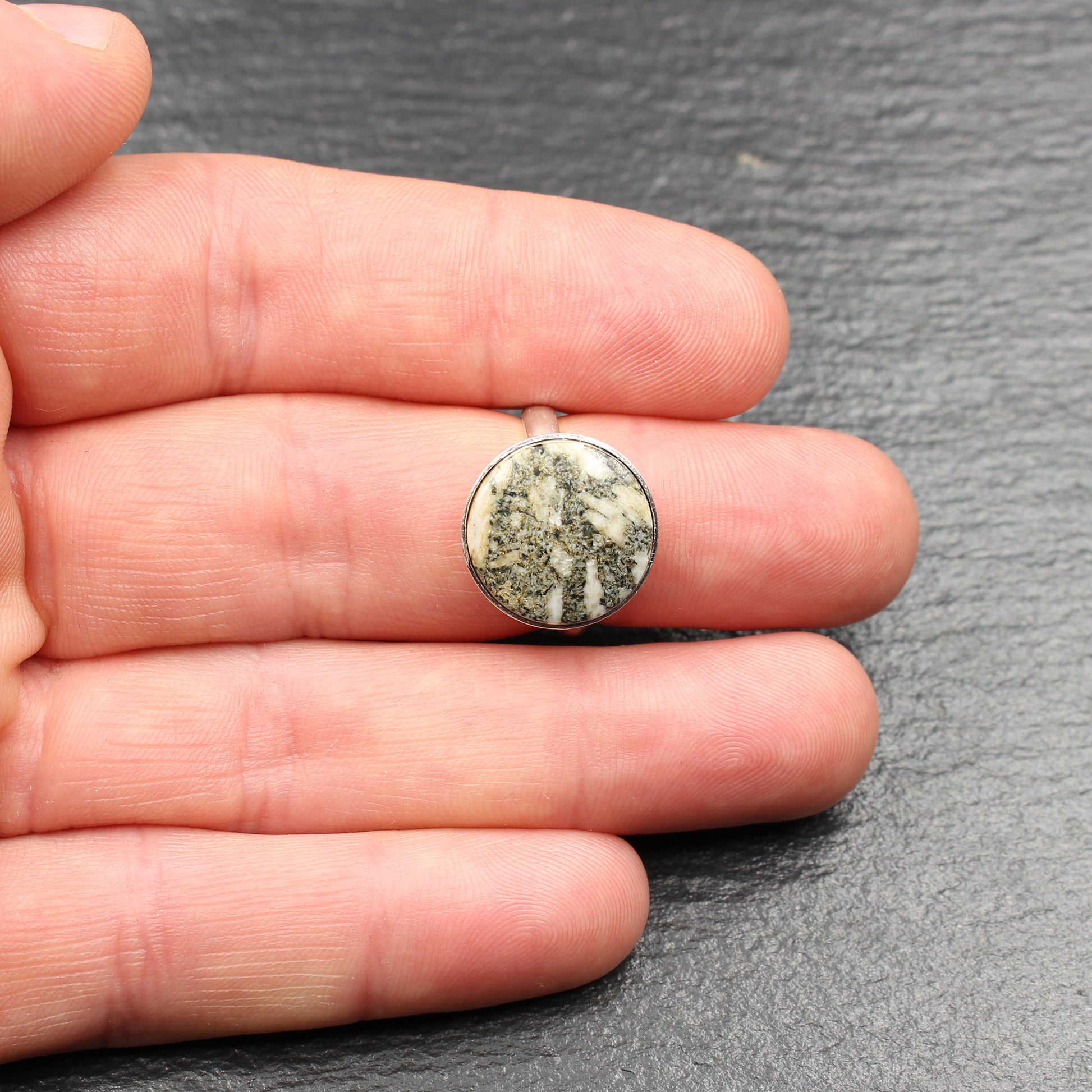 Andesitporphyr Silberring (Größenverstellbar) - Handarbeit aus Deutschland