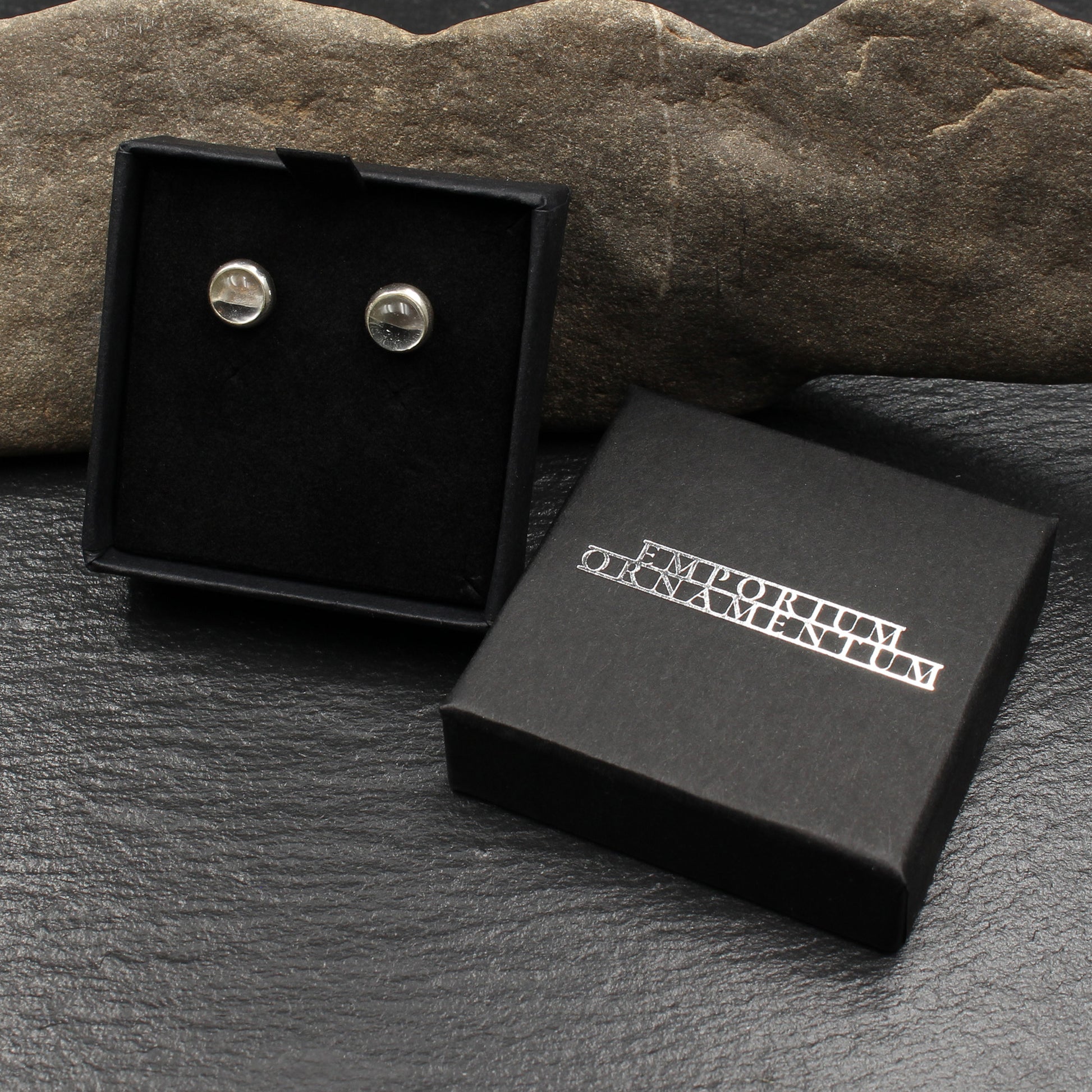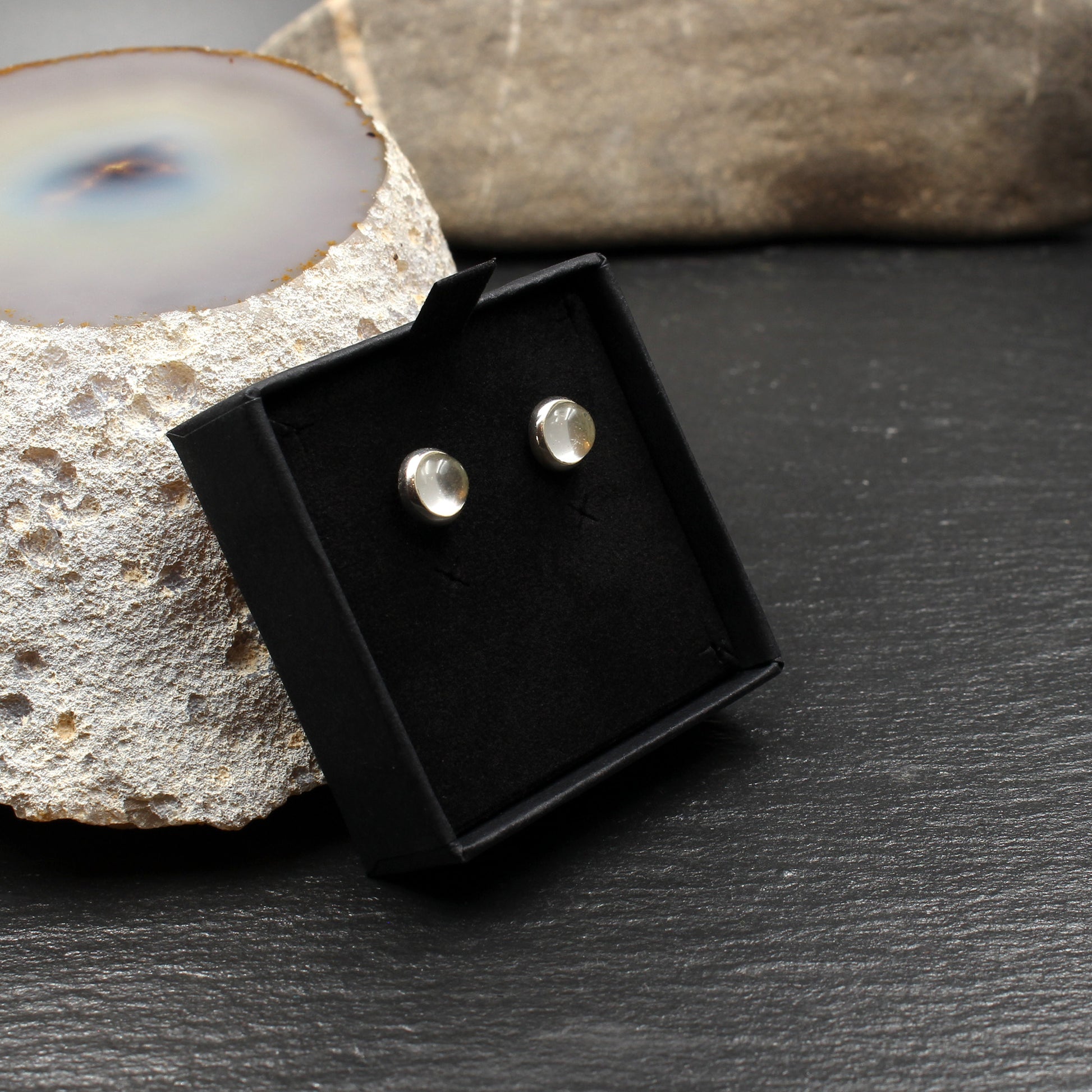 Ohrstecker aus 925 Silber und Bergkristall im Cabochonschliff.