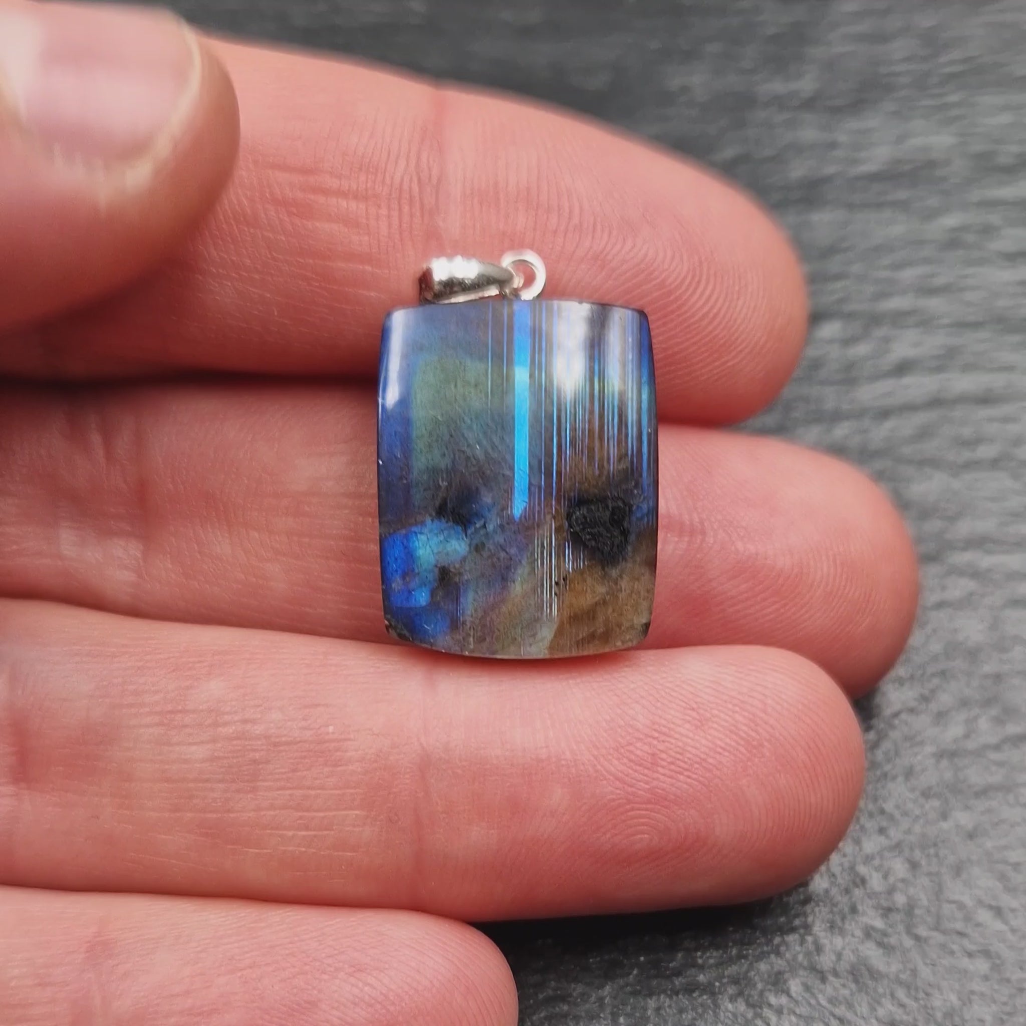 Finnischer Spektrolith Edelstein Anhänger – Handarbeit aus Deutschland