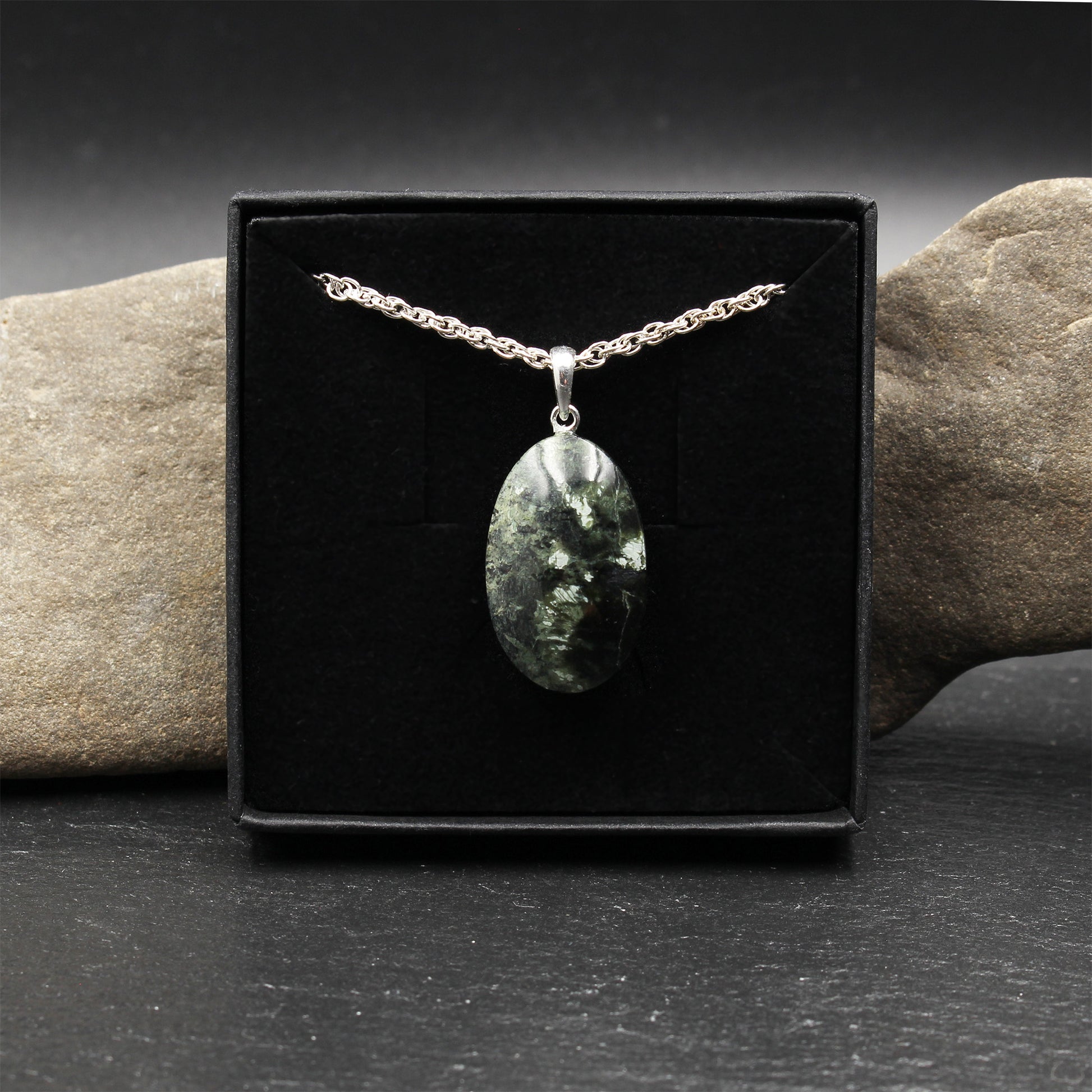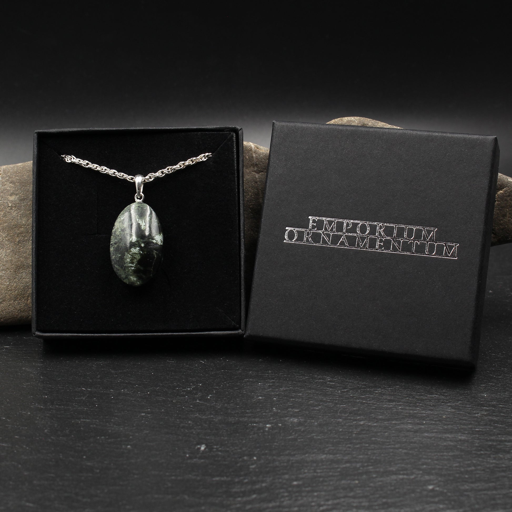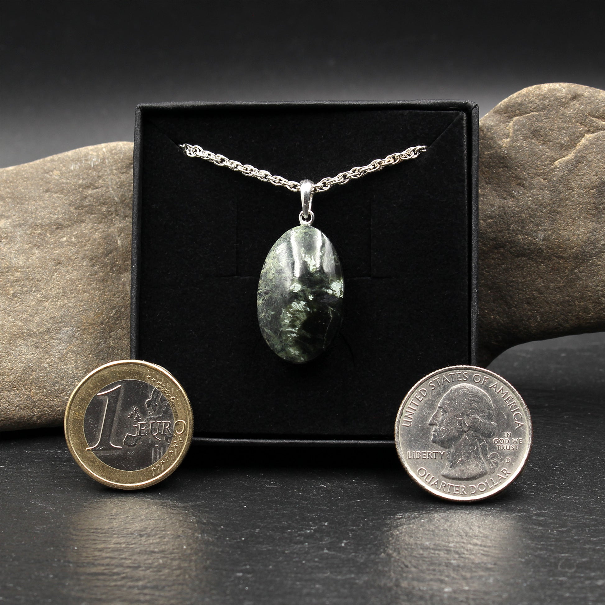 Handgefertigter Anhänger aus bayrischem Serpentinit, einem Gestein, das vor etwa 20.000 Jahren durch den eiszeitlichen Inngletscher ins Alpenvorland transportiert wurde.