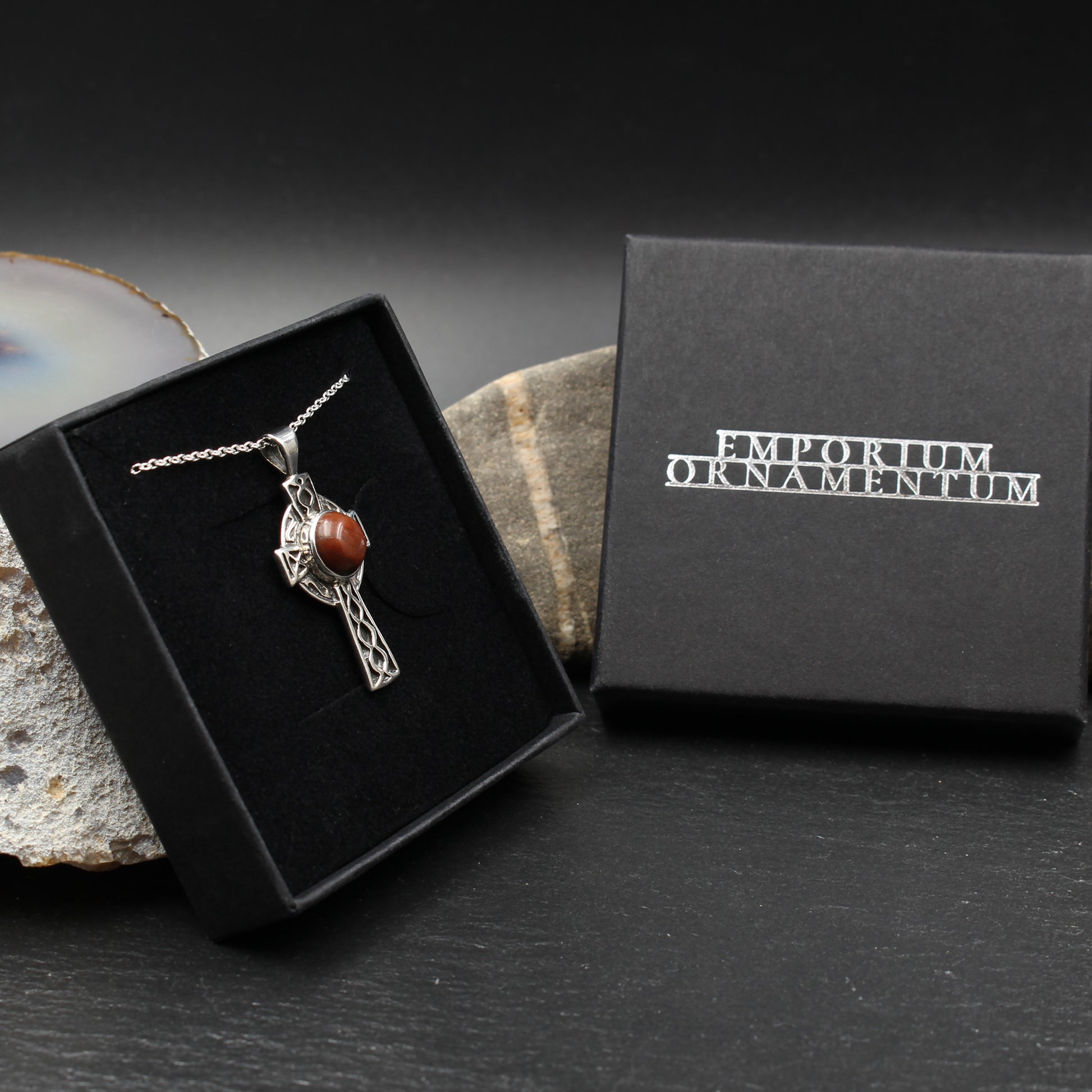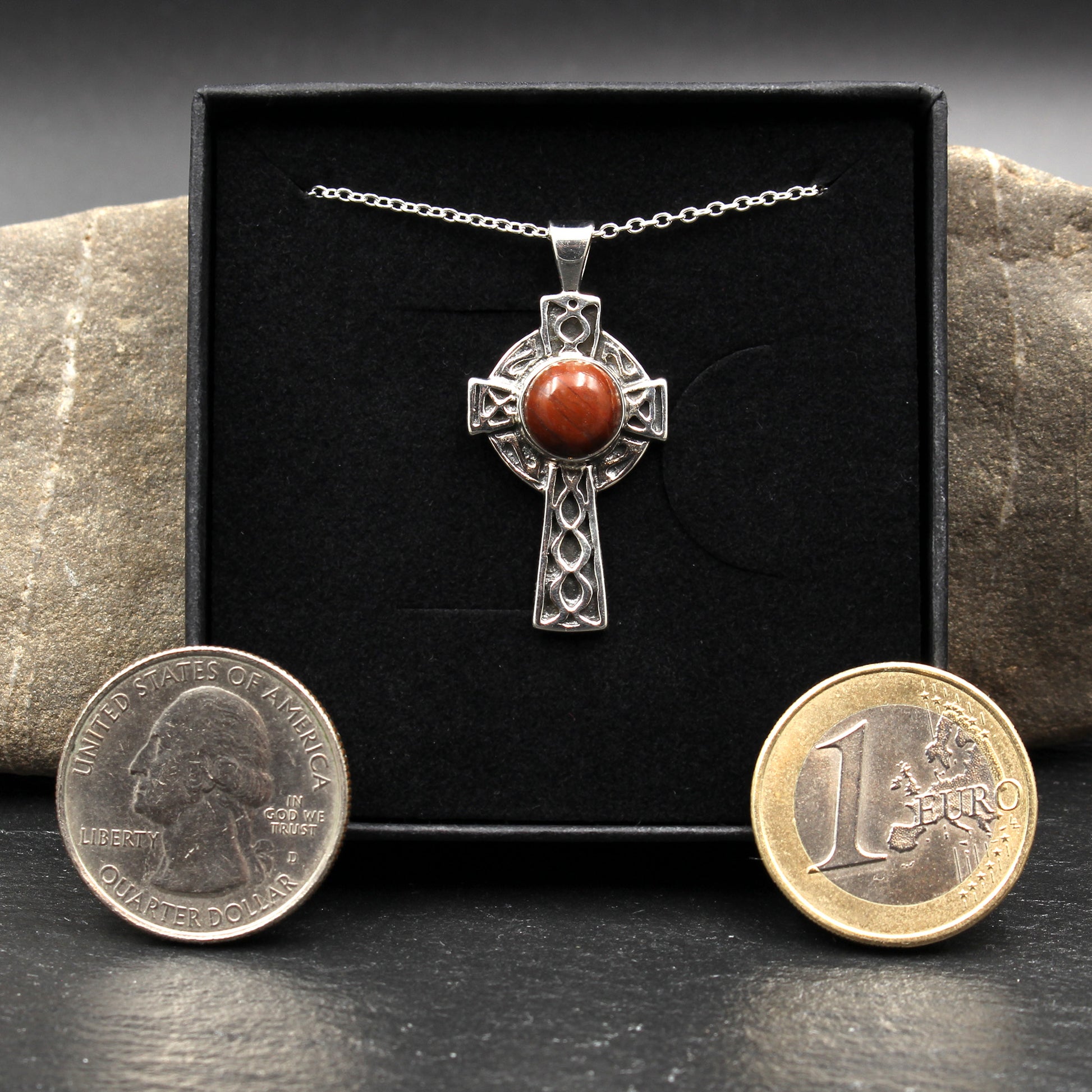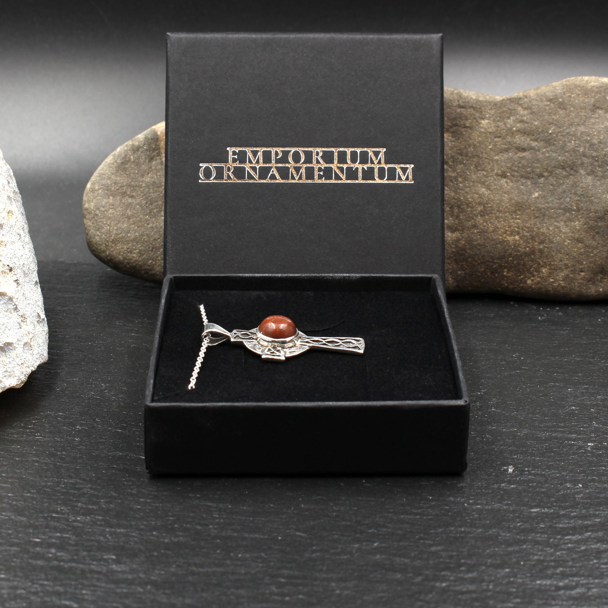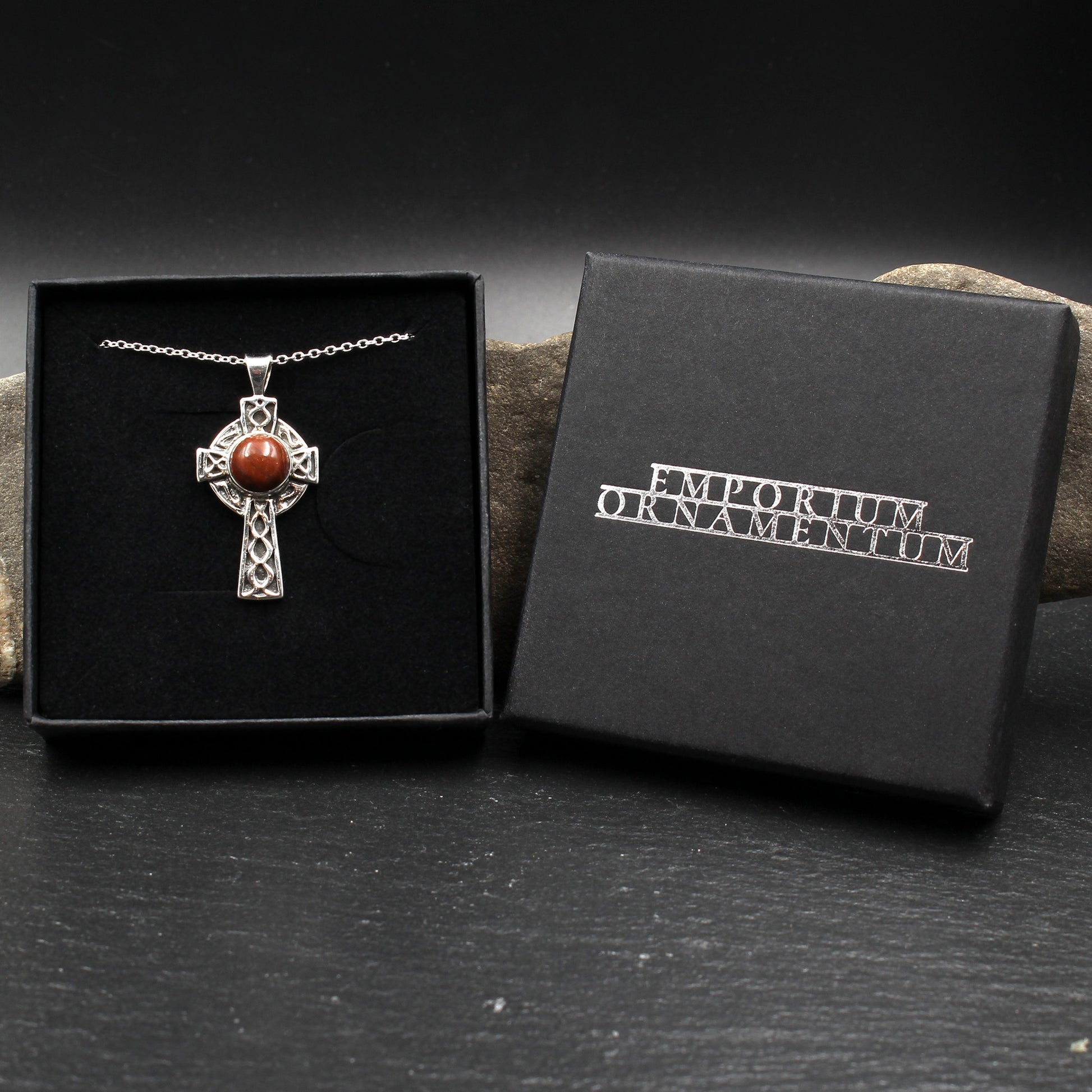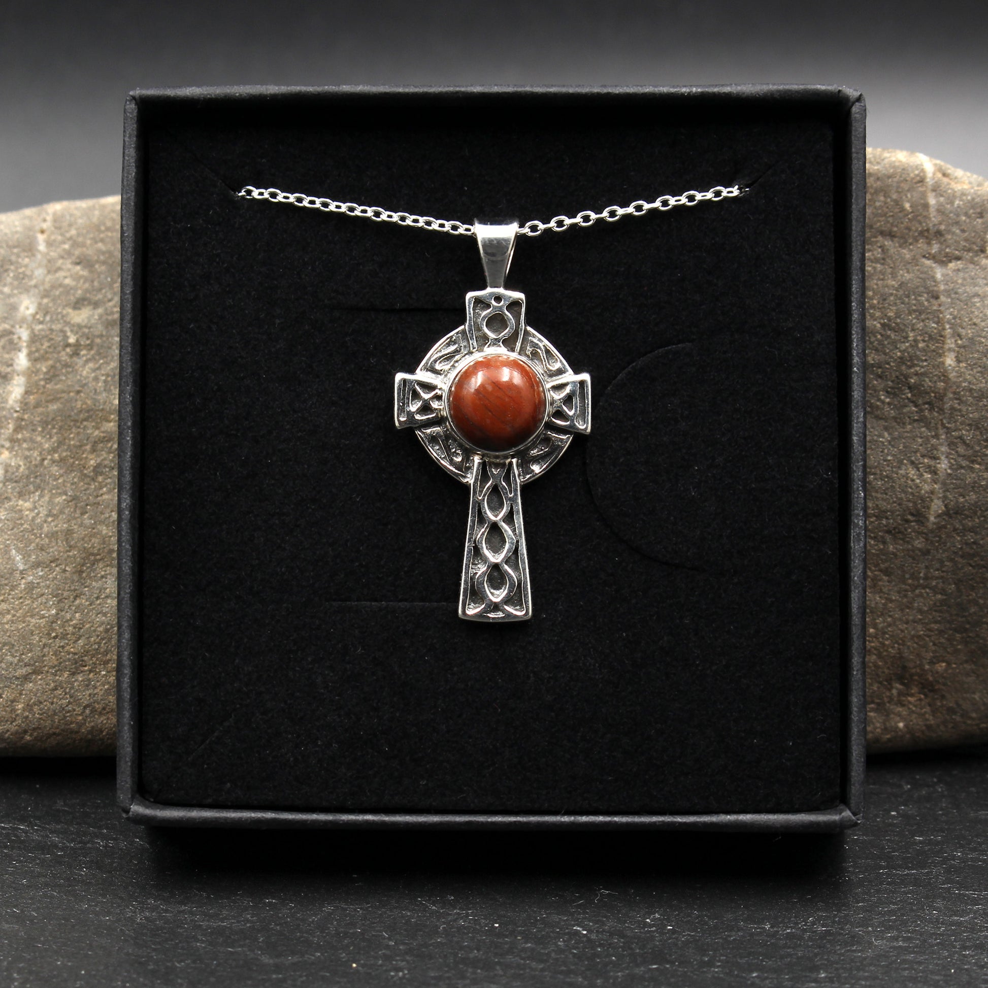 Ein bekanntes Beispiel solcher Kreuze, findet man auf der schottischen Insel Iona, auf der auch unser schottischer grüner Marmor, Iona Marmor und der schottische Lewisian gefunden wird. Unser Anhänger im Design eines keltischen Kreuzes ist also ein wahres Stück Schottland zum tragen!