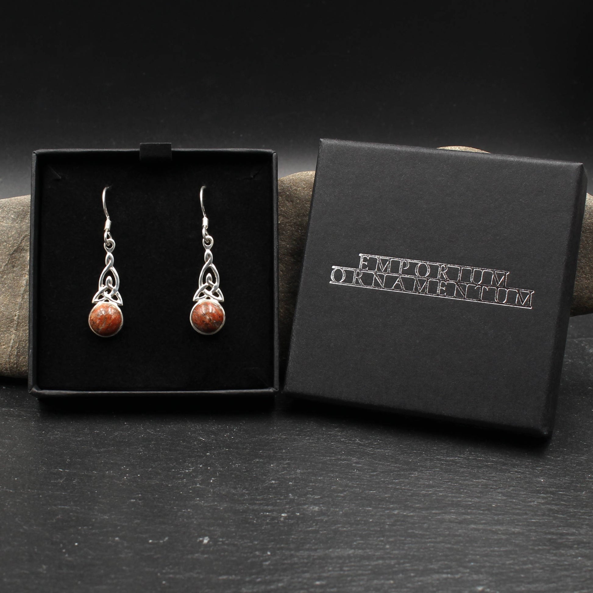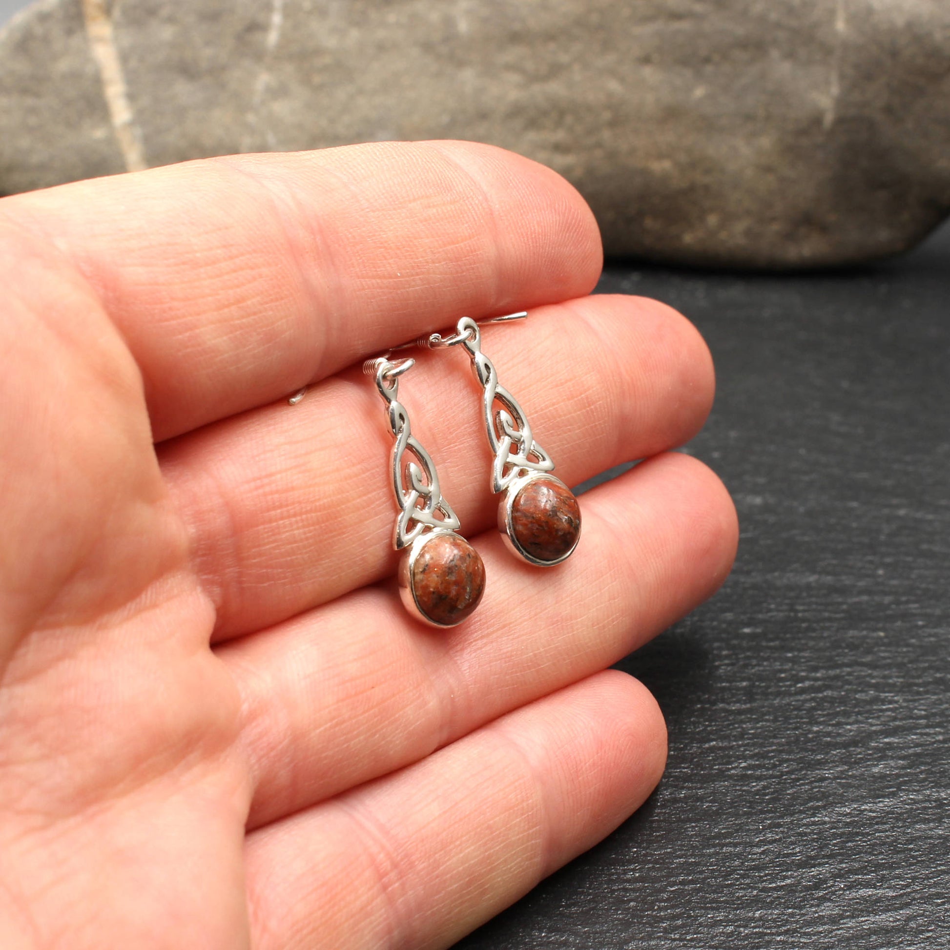 Keltische Ohrringe im keltischen Knoten Design aus 925er Sterling Silber mit schottischem Lewisian.