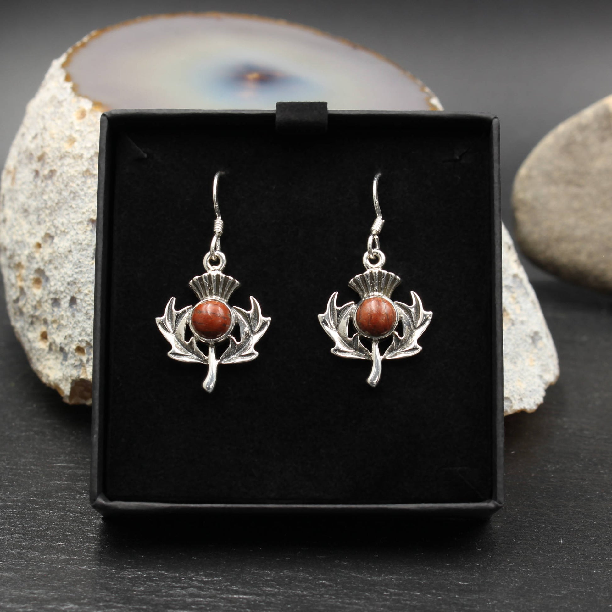 Ohrringe mit schottischem Lewisian im Design einer Distel, der Nationalblume Schottlands.