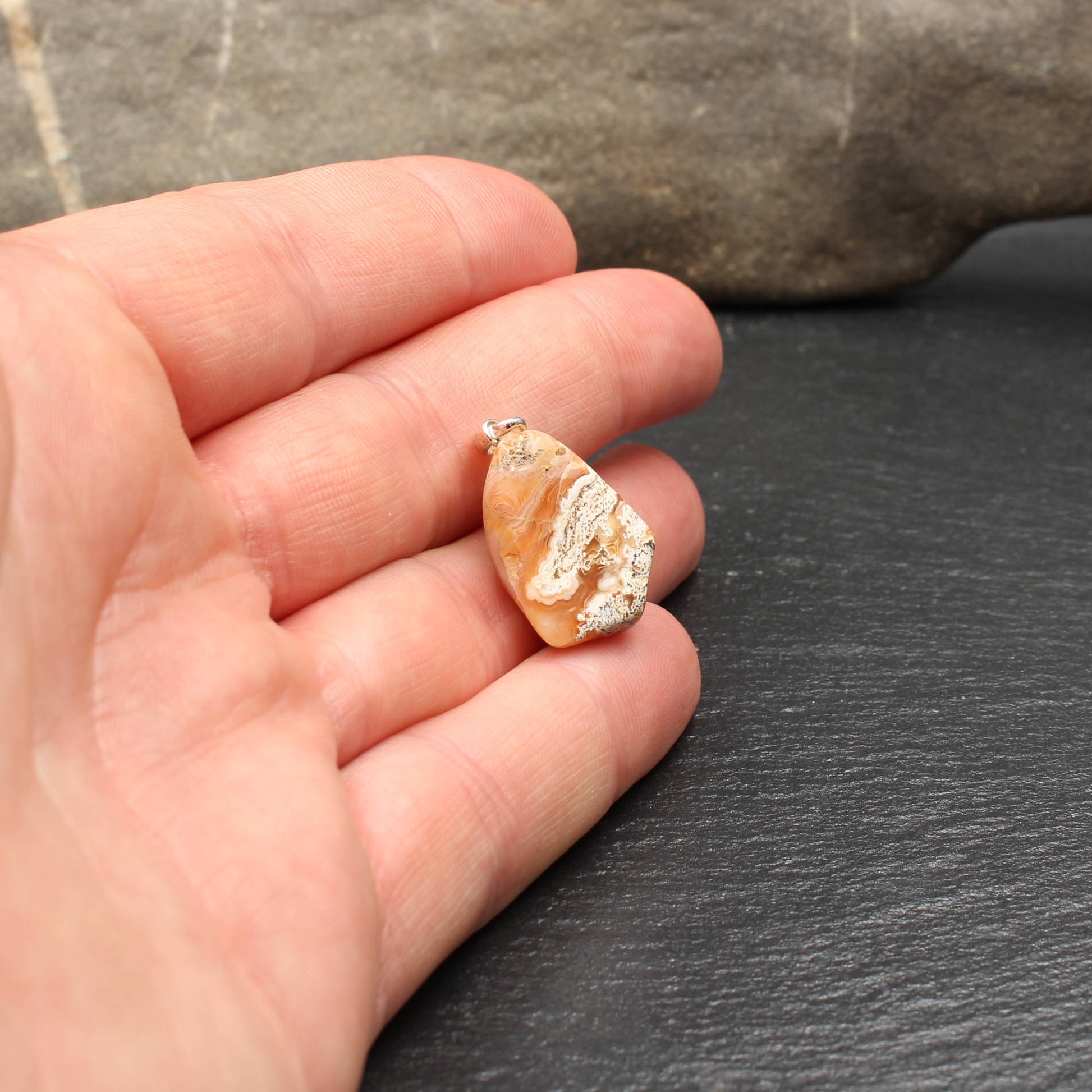 Ein ganz besonderer Anhänger aus einem Stück Achat vom Rhein, der Anhänger ist von uns in Handarbeit gesammelt, geschliffen und poliert worden und ist ein absolutes Unikat.